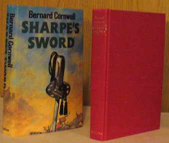 A. [5287] Cornwell, Bernard. Sharpe's Sword . London: Collins. Sm. 8 vo., 319 pp. 1st Edition. 1983. Richard Sharpe and the Salamanca Campaign June and July, 1812. The 4th title in the Richard Sharpe series, and by far the most scarce--only about 500 copies apparently printed of the 1st edition. Red cloth. Some cocking of spine; slight edgewear; o/w a VG+ copy in a VG pictorial d.j. that is price-clipped and has some minor scratches and chipping. A fine value. SOLD
